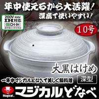 ●IH対応●年中使える便利な深型土鍋で美しく鍋料理。【12%OFF】マジカルどなべ 大黒はけめ10号 価格: 21,400円 レビュー評価: 0.0 レビュー数:0 マジカルどなべは土鍋本来の風合いを保ちながら、鍋底に肉厚のカーボン製発熱体を組み込んだ土鍋です。IH調理器をはじめ、ガス直火・電子レンジなど幅広い熱源に対応!とっても便利です。サイズ横幅(持ち手含む)340×高さ175mm内径270×深さ93mm重量胴2000g、蓋1280g素材・材質陶土、釉薬、カーボン、シリコーン仕様満水容量:5000ml適正容量:3400mlIH200V・3KWまで対応製造国日本 ※こちらの商品は、ご注文いただいてからお届けまでに一週間?10日ほどいただく場合がございます。ご了承くださいませ。 ↓他のサイズご希望にははこちら↓8号9号10号 Supported by 楽天ウェブサービス |